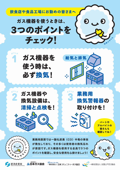 近年、食品工場や業務用厨房施設等において、都市ガス及び液化石油ガスの消費設備による一酸化炭素中毒事故が発生しています。