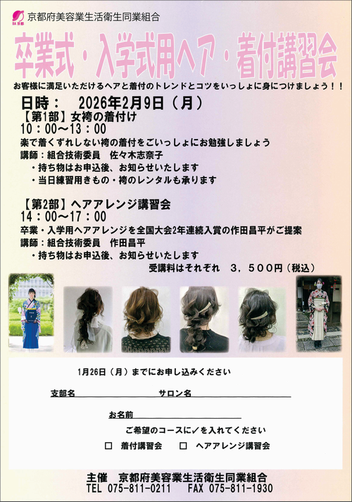 2026/01/06 美容組合|卒業式・入学式用ヘア・着付講習会のお知らせ